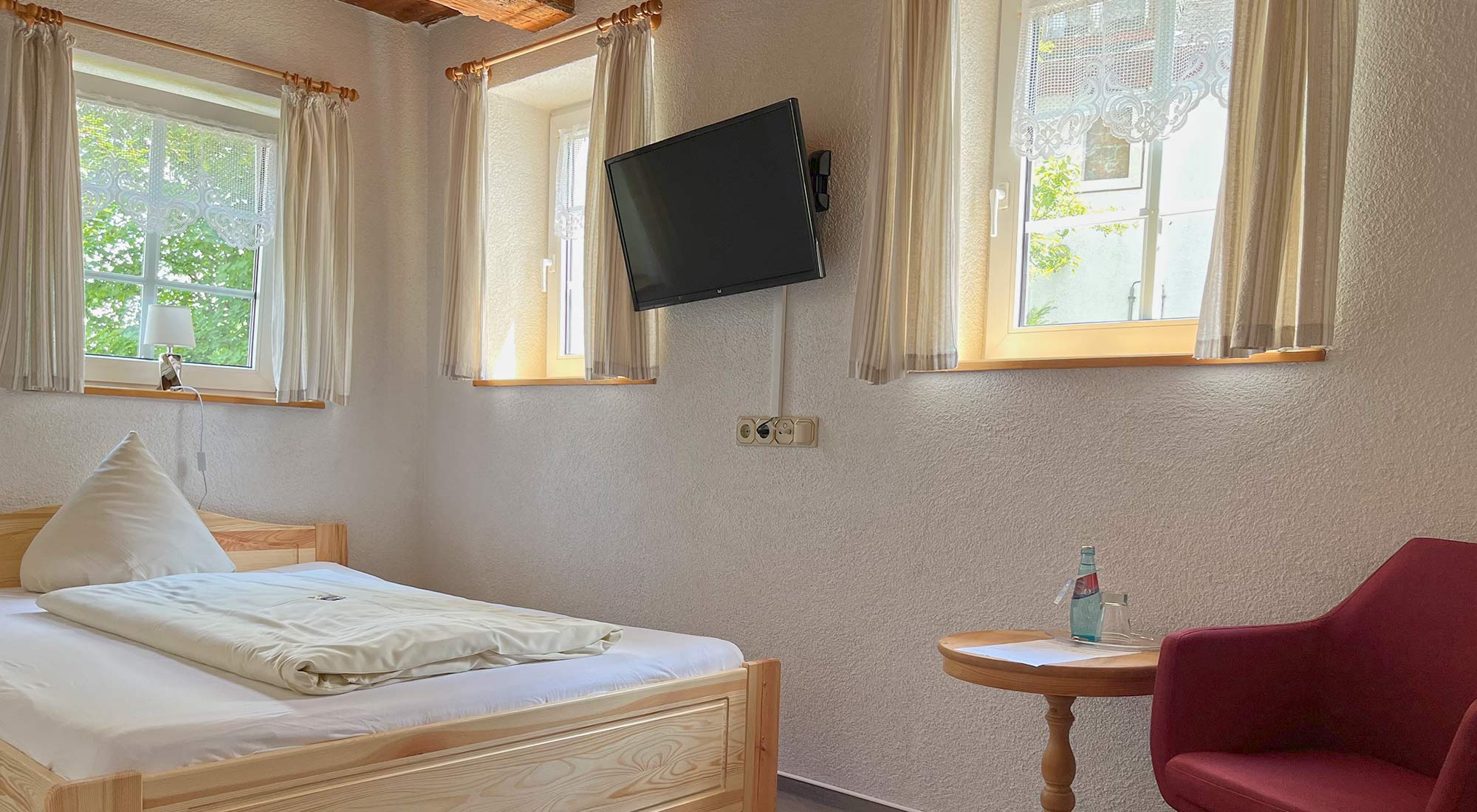Unser Hotel hat 28 Gästezimmer, in Form von Einzelzimmern, Doppelzimmern sowie zwei Familienappartements. Aufbettungen sind ebenso möglich je nach Zimmer.